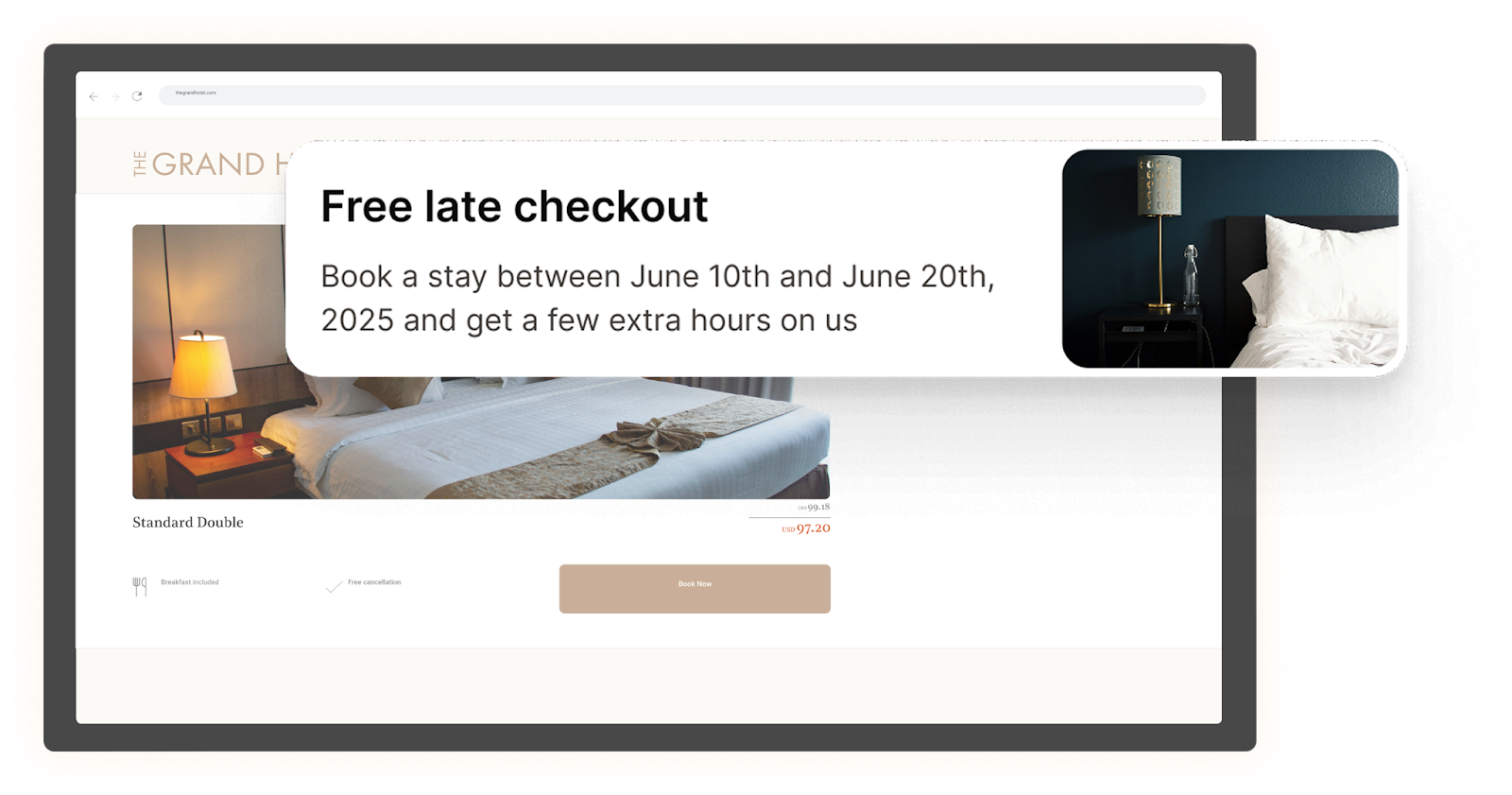 Metasearch and Paid search advertising bids are increased when people interested in those need dates search, to maximize visibility of your direct booking options. When those guests land on your website they can be shown personalized, stay-date-specific messaging from the moment they arrive, driving up conversion rates. The result? You’re more likely to get more bookings for those periods, without heavy discounts or relying solely on expensive OTA conversions.